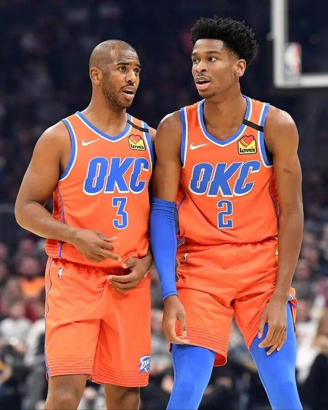 在火箭度过两年后,由于保罗·乔治被交易至快船联手科怀·伦纳德引发连锁反应,保罗在一笔涉及拉塞尔·威斯布鲁克的交易中被送往俄克拉荷马雷霆。尽管仅在雷霆效力一季,但他在此期间指导了年轻球员SGA亚历山大,并带领球队闯入季后赛。虽然只有一年的时间,但SGA也正是在保罗的指导下飞速成长和进步,并在上赛季拿到了总冠军、总决赛MVP、西决MVP、常规赛MVP和得分王殊荣。